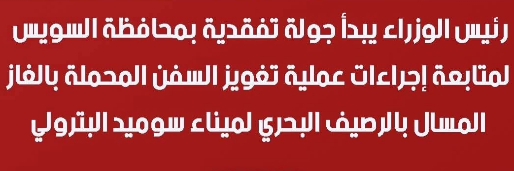 ننشر لمحات سريعة حول جولة تفقدية لرئيس الوزراء بمحافظة السويس لمتابعة إجراءات عملية تغويز السفن المحملة بالغاز المسال بالرصيف البحري لميناء سوميد البترولي ..