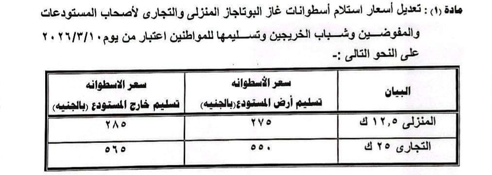 سعر الأسطوانة المنزلية (12.5 كجم)