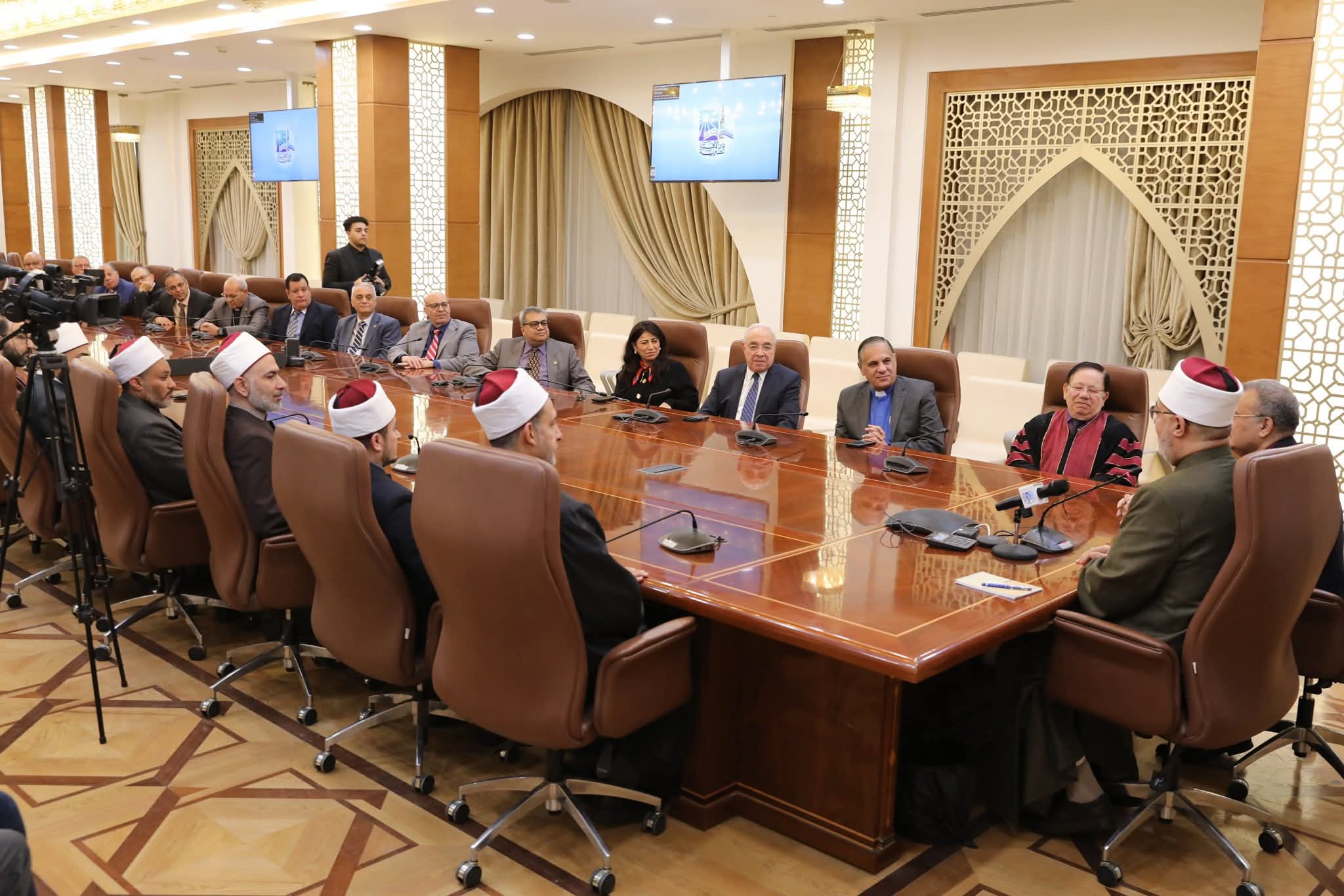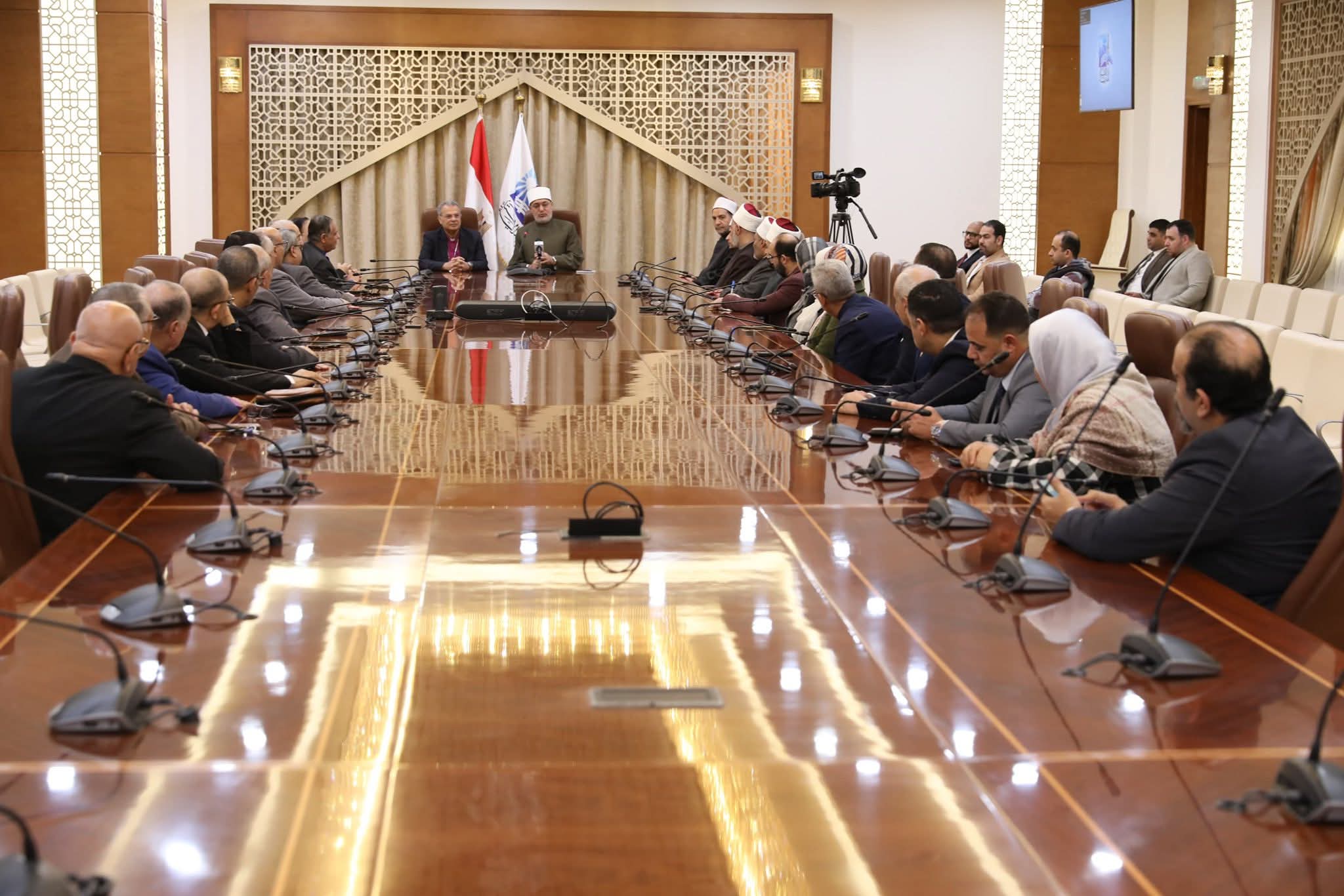 وأعرب فضيلة مفتي الجمهورية، في مستهلِّ اللقاء، عن بالغ سعادته بهذه الزيارة الكريمة التي تعكس عمق الروابط الإنسانية والوطنية بين أبناء الشعب المصري، مؤكدًا أن مثل هذه اللقاءات، بما تحمله من مودةٍ صادقة ومحبةٍ خالصة، تُجسِّد طبيعة الشعب المصري الأصيل وتماسك نسيجه، وتعكس روح التعاون والتراحم بين أبناء الوطن الواحد، مضيفًا أن هذا اللقاء يحمل في طياته رسائل محبةٍ صادقة تعبِّر عن روح الأخوة التي تجمع المصريين، وأن دفء العلاقات الإنسانية وعمقها يُعدان أساسًا متينًا تُبنى عليه الأمم، وتستمد منه قوتها في مواجهة التحديات، كما يُمثلان حائط صدٍّ منيعًا في ظل ما يشهده العالم من صراعاتٍ متزايدة، مشيرًا إلى أن تبادل التهاني في الأعياد والمناسبات يعكس أصالة الروابط بين المصريين، ويُعزِّز من قيم التعايش والتلاحم المجتمعي، بما يدعم استقرار الوطن ويدفع مسيرته نحو مزيدٍ من التقدم والازدهار.