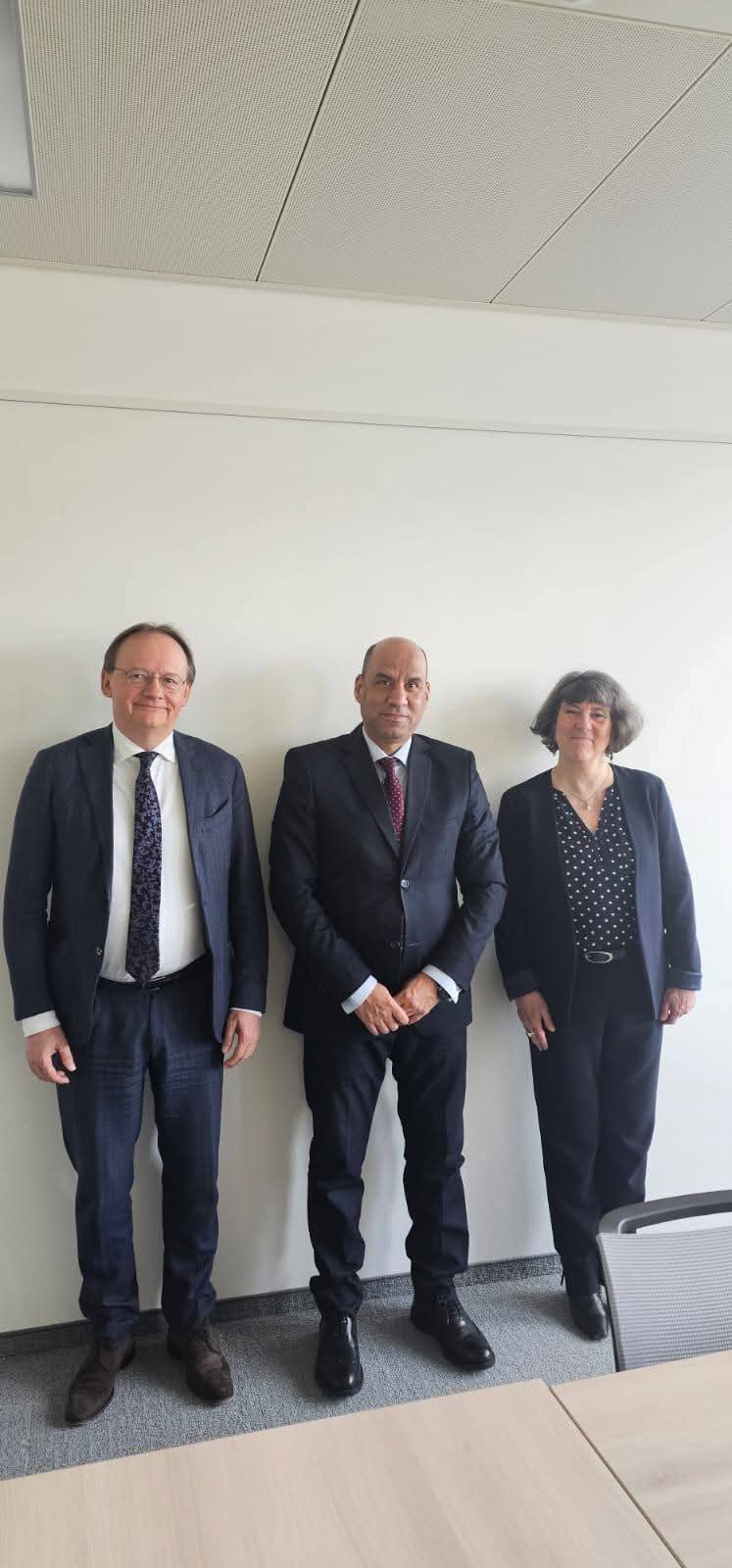 عقد حسن رداد وزير العمل سلسلة لقاءات مهمة مع عدد من قيادات منظمة العمل حيث التقى كورين فرجا مدير إدارة معايير العمل الدولية، كما التقى فيرا باكيت مديرة إدارة حوكمة العمل وثلاثية الأطراف ، وذلك في إطار تعزيز التعاون المشترك ودعم جهود مصر في تطوير التشريعات العمالية والالتزام بمعايير العمل الدولية...حضر اللقاء: ايهاب عبدالعاطي عليان المستشار القانوني للوزير ، ومحمد عادل من البعثة المصرية في جنيف،وأمنية عبدالحميد مساعد فني بمكتب الوزير ..خلال مشاركة حسن رداد وزير العمل المصري في فعاليات مجلس إدارة منظمة الدولية بـجنيف وعلى هامش مشاركته في فعاليات مجلس إدارة منظمة العمل الدولية المنعقدة حالياً في جنيف ..