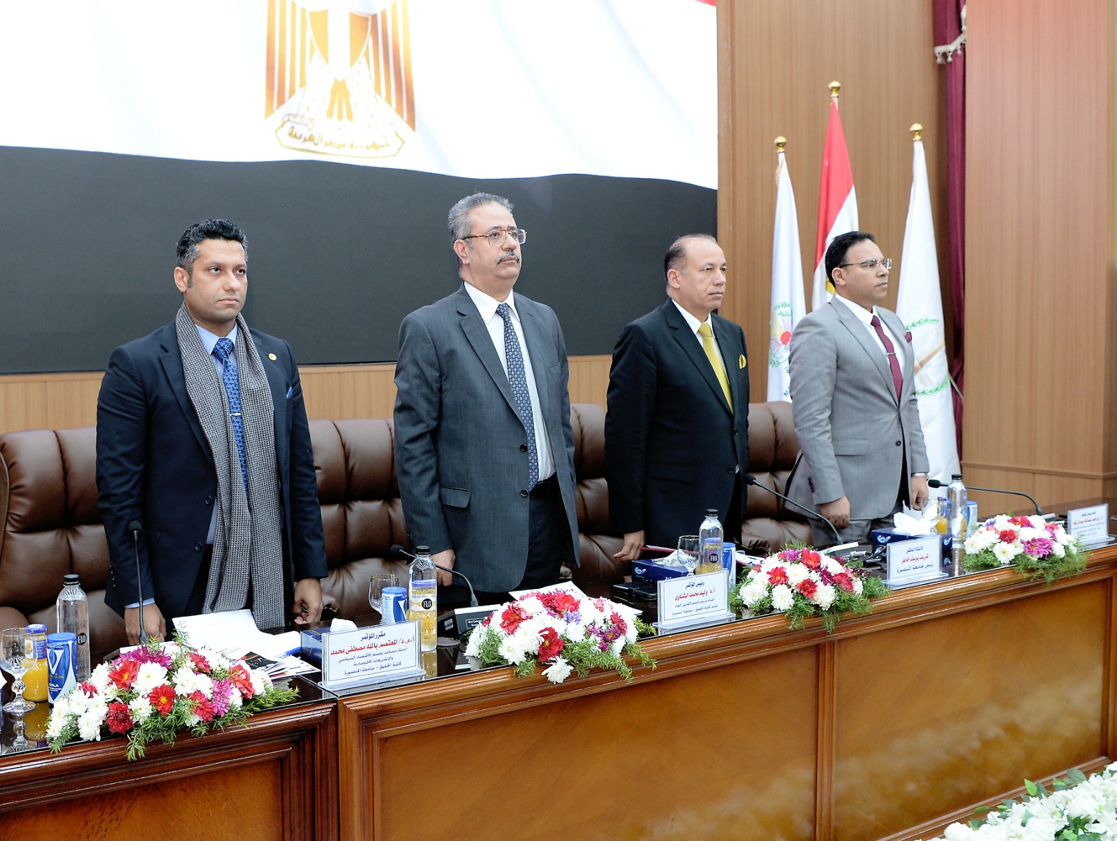 حضر الافتتاح الدكتور السيد أحمد عبد الخالق، وزير التعليم العالي الأسبق، والدكتور وليد محمد الشناوي، عميد كلية الحقوق ورئيس المؤتمر، والدكتور محمد شطا، عميد كلية الزراعة، والدكتور أحمد مطاوع، عميد كلية التجارة، والأستاذ سعد عبد الوهاب، أمين عام الجامعة، والدكتور إبراهيم عبد الله عبد الرؤوف، وكيل الكلية لشؤون الدراسات العليا والبحوث ونائب رئيس المؤتمر، والدكتور تامر صالح، وكيل الكلية لشؤون التعليم والطلاب، والدكتور علاء التميمي، وكيل الكلية لشؤون خدمة المجتمع وتنمية البيئة، والدكتور المعتصم بالله مصطفى، أستاذ مساعد الاقتصاد السياسي والتشريعات الاقتصادية ومقرر المؤتمر، إلى جانب رؤساء الأقسام، ونخبة من كبار أعضاء هيئة التدريس ومعاونيهم، وباحثي الدراسات العليا من مختلف الجامعات المصرية والعربية.