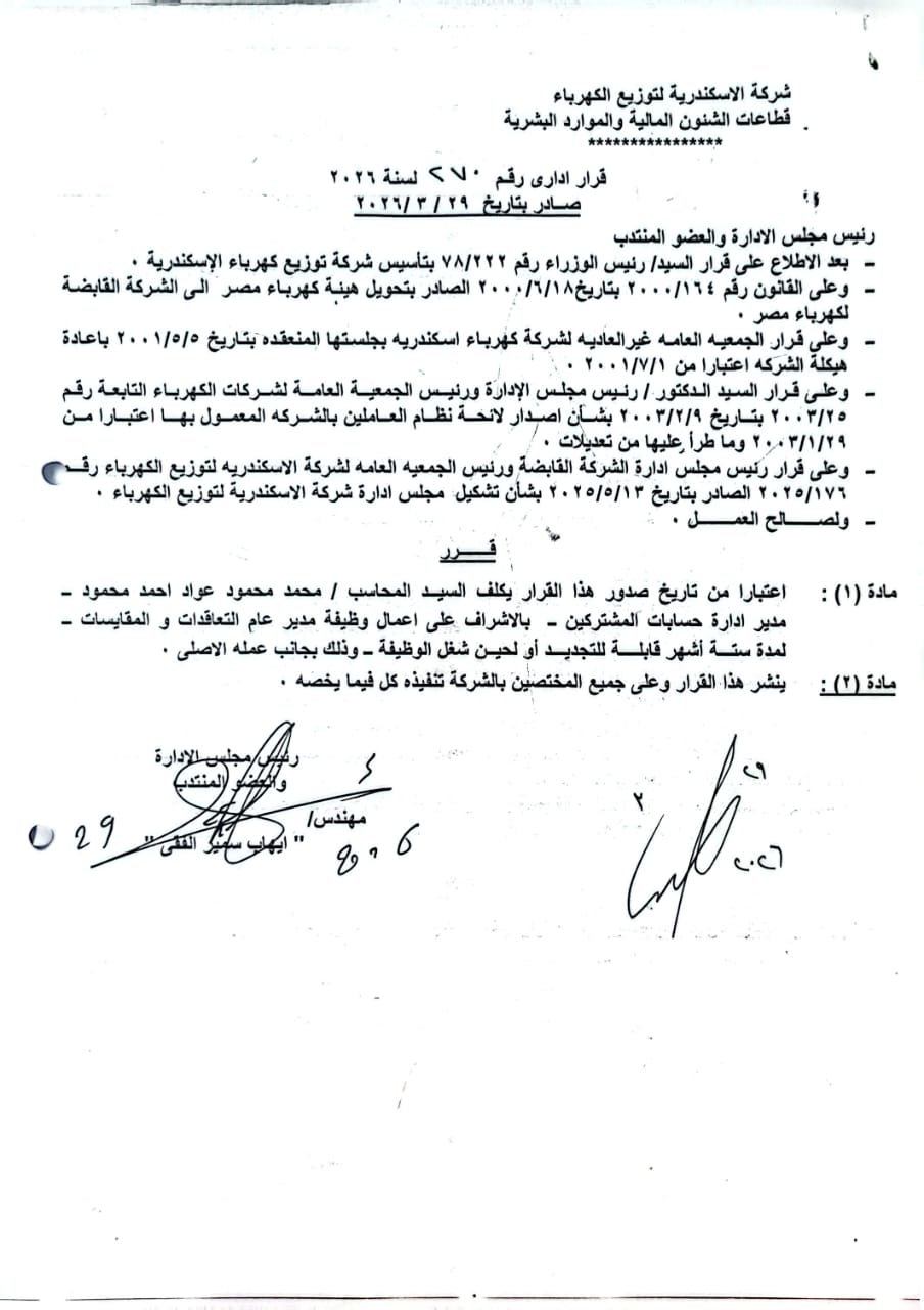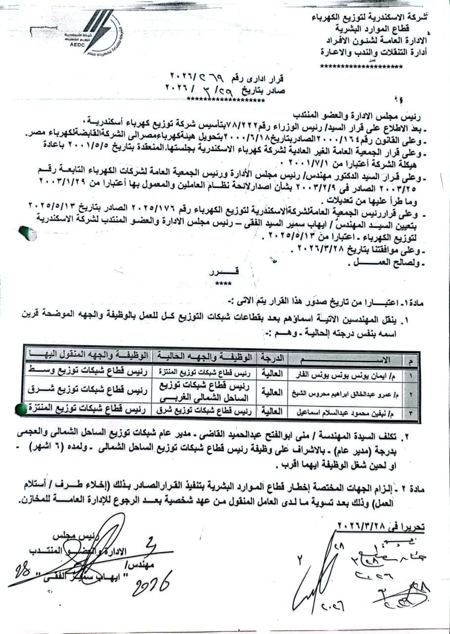 اعتمدت شركة الاسكندرية لتوزيع الكهرباء حركة تنقلات وترقيات جديدة في إطار إعادة الهيكلة وتعزيز كفاءة الآداء.
