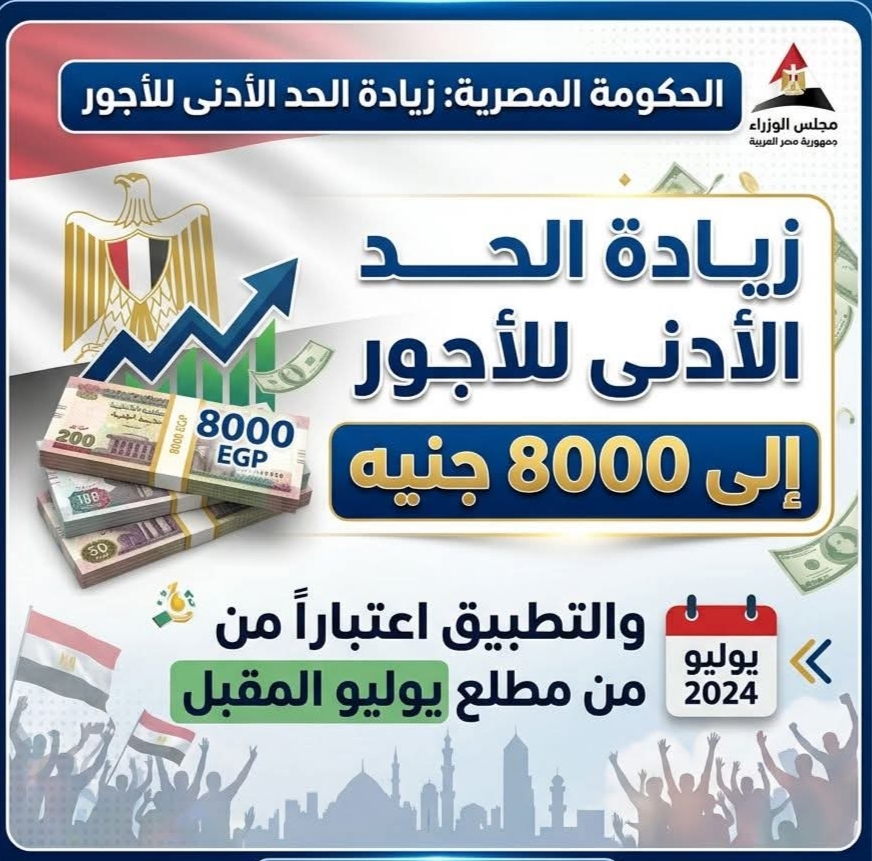 - زيادة الحد الأدنى للأجور إلى 8 آلاف جنيه.. والتطبيق اعتباراً من مطلع يوليو المقبل ..