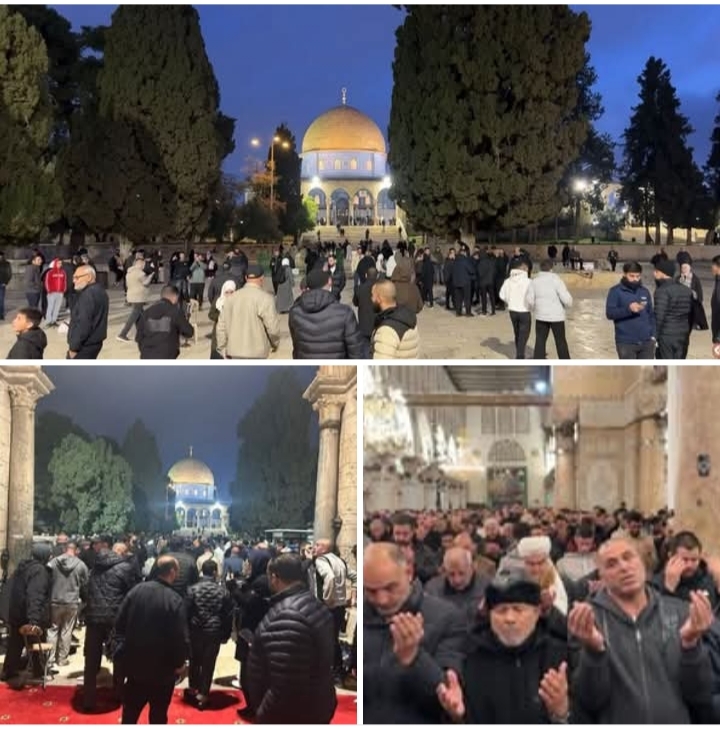 وقد أدى جموع من المصلين صلاة الفجر داخل المسجد الأقصى ..