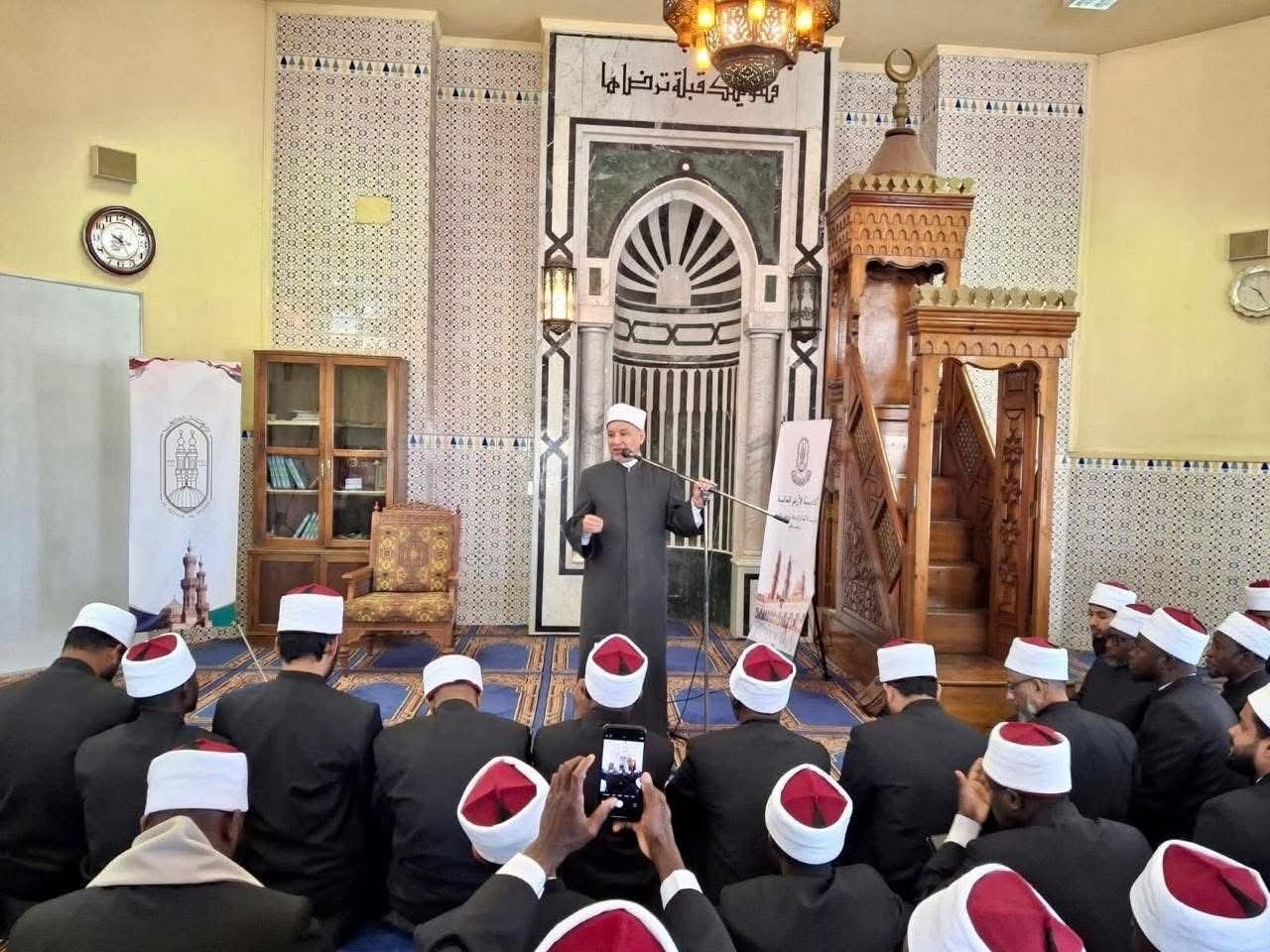 احتفلت أكاديمية الأزهر العالمية لتدريب الأئمة والوعاظ برعاية فضيلة الإمام الأكبر .. باختتام فعاليات دورة «إعداد الداعية المعاصر»، بمشاركة نخبة من الأئمة الوافدين من دول: (نيجيريا، الهند، توجو، غانا)، في إطار برنامج «إعداد الداعية المعاصر» الذي تنفّذه الأكاديمية على مدار شهرين كاملين بمقرها بمدينة نصر.