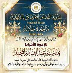 يبعث اللواء طارق مرزوق، محافظ الدقهلية، بخالص التهاني القلبية إلى الإخوة المسيحيين .. شركاء الوطن، بمناسبة عيدهم المجيد، داعياً الله عز وجل أن يحفظ مصر دائما بالأمن والأمان والاستقرار، وأن يديم علينا وحدة صفوفنا، ويحمي وطننا من كل مكروه وسوء في ظل القيادة الرشيدة للرئيس عبد الفتاح السيسي.
