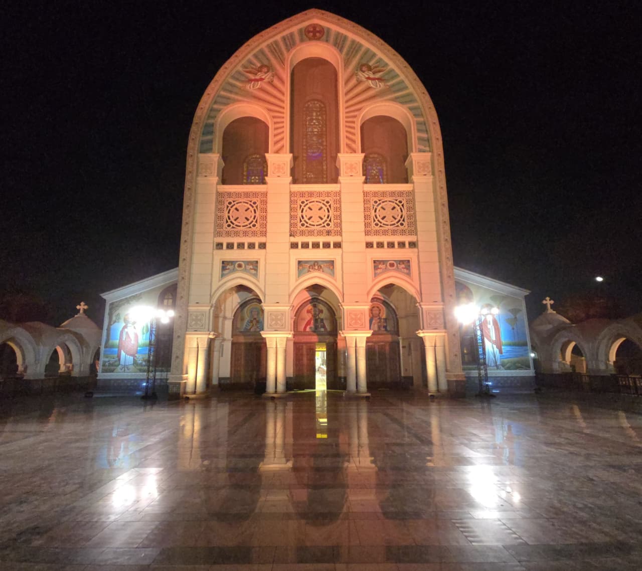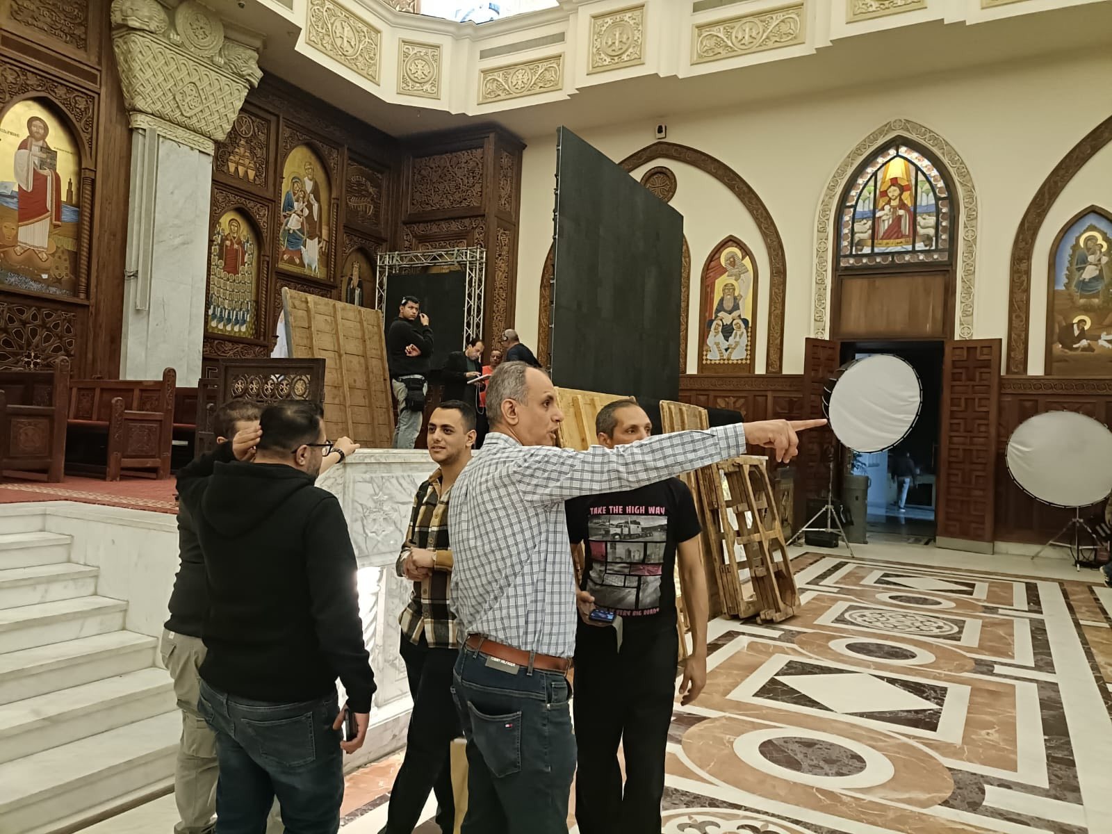 كما تم الاستعانة بأحدث وسائل الإضاءة بالتعاون مع شركة جينرال Nanlite العالمية، بما يسهم في إبراز التفاصيل الجمالية داخل الكاتدرائية بشكل احترافي يواكب المعايير العالمية في نقل الفعاليات الكبرى وذلك بدعم مدير الإضاءة والتصوير خالد الدش، وفي خطوة تعكس التطور التقني في التغطية، تم استخدام كاميرا "درون" لتقديم لقطات جوية مميزة، تضيف بعدًا بصريًا جديدًا وتمنح المشاهد رؤية شاملة لمحيط الكاتدرائية وأجواء الاحتفال.