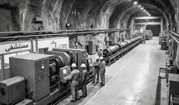 ترصد اللقطة البصرية بالأبيض والأسود مجمعاً صناعياً هائلاً داخل أنفاق جبلية محصنة، حيث تظهر خطوط إنتاج الصواريخ ومنشأة طبية تحمل لافتة "مستشفى" .. في عام 2026 أثبتت طهران قدرتها على نقل "الدولة بالكامل" إلى باطن الأرض .. لضمان استمرار العمليات الحربية والسياسية حتى في حال تعرض السطح لضربات نووية أو تقليدية عنيفة ..
