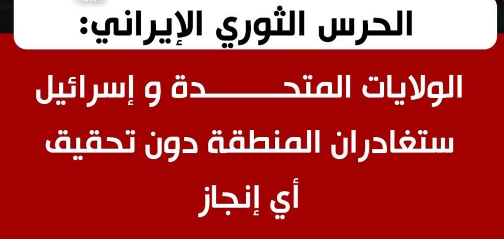 - الحرس الثوري الإيراني: الولايات المتحدة وإسرائيل سترحلان عن المنطقة دون أن تحققا أي مكاسب تُذكر ..