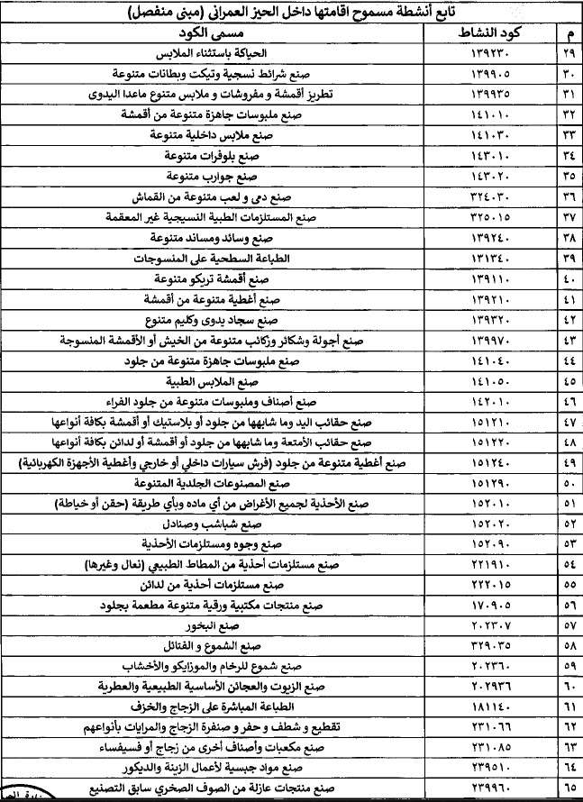 وننشر تفاصيل الأنشطة الصناعية بالاسماء: