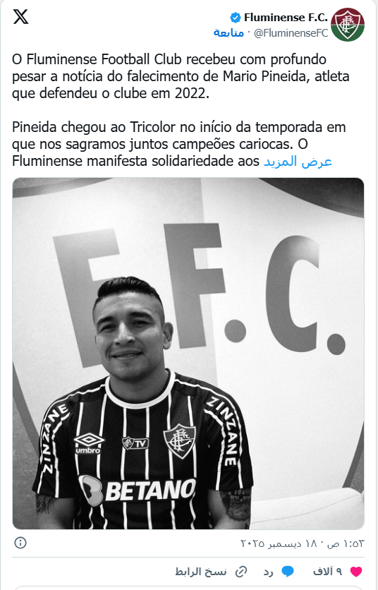 أعلن نادي برشلونة الإكوادوري مقتل لاعبه ماريو بينيدا، الذي لقي حتفه إثر تعرضه لهجوم مسلح في مدينة جواياكيل.