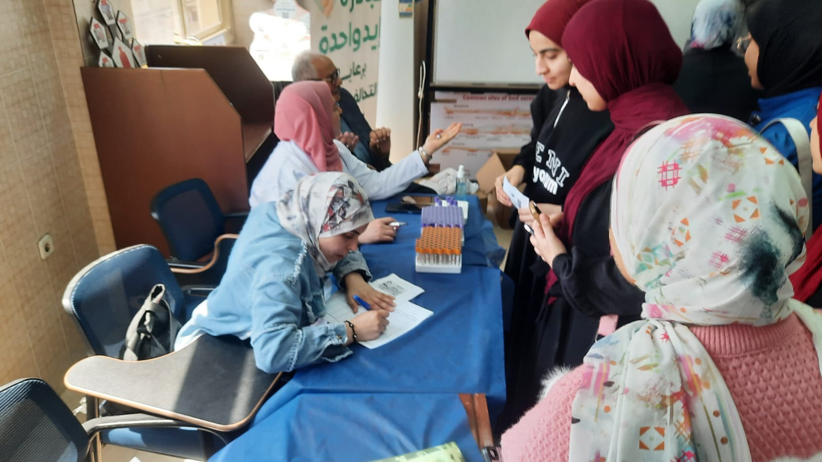 وشهدت القافلة إقبالًا ملحوظًا من أعضاء هيئة التدريس، والهيئة المعاونة، والجهاز الإداري، والعاملين، والطلاب، حيث استفاد عدد كبير منهم من الخدمات الطبية المقدمة، والتي تنوعت لتغطي عددًا من التخصصات المهمة، شملت إجراء التحاليل الطبية (صورة دم كاملة وفيروسات B وC)، والكشف الباطني، وأشعة السونار على الجهاز الهضمي والكبد، إلى جانب خدمات التغذية العلاجية، فضلًا عن تخصصات جلدية وغيرها من الخدمات الصحية المتكاملة ..