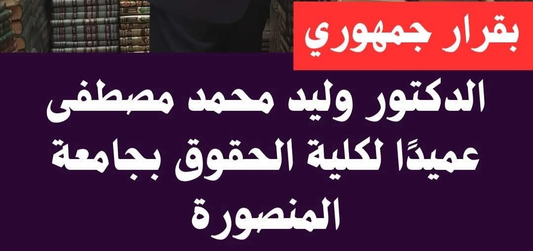 وتضمنت القرارات تعيين الدكتور وليد محمد رضا السيد مصطفى الشناوي عميدًا لكلية الحقوق بجامعة المنصورة ..